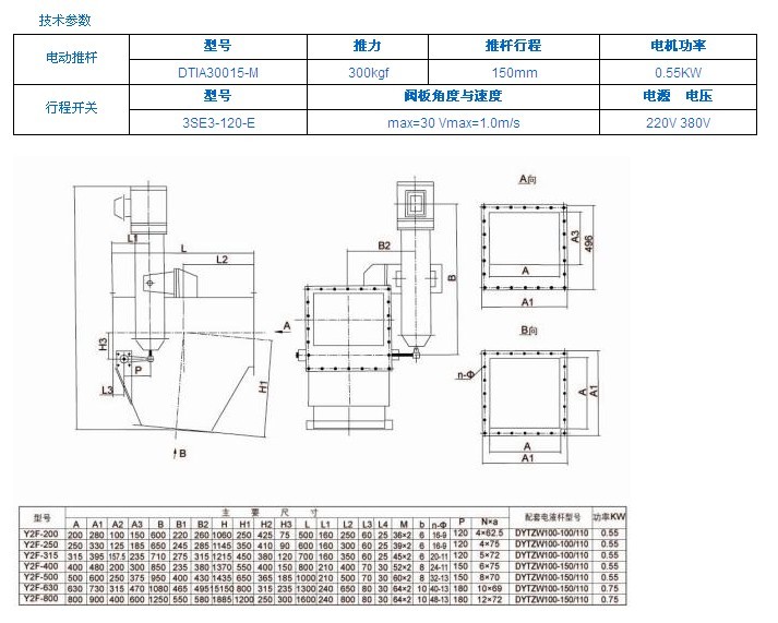 輸送斜槽兩通閥電動推桿以電動機為動力源,通過齒輪傳動變速以及絲桿螺母的螺旋傳動,把旋轉運動轉化為直線運動并利用電動的正反轉實現往復進退動作,當外力超過推桿額定推力時,通過內部限機構自動停機。